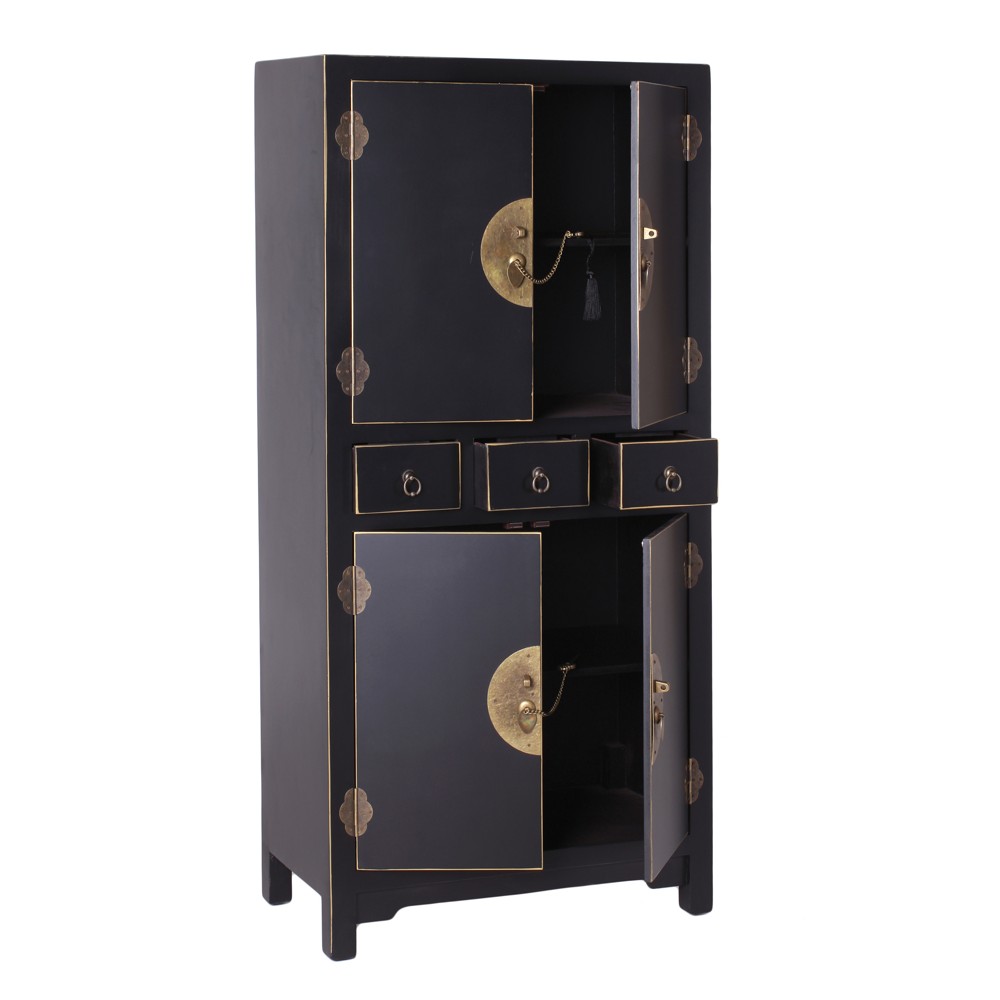 MUEBLE AUXILIAR NEGRO 63 X 33 X 131 CM MATERIAL: DM Medida cajones: 16x27x10cm. Interior: 2 lejas, una en la parte superior y otra en la inferior. Altura entre lejas: 23.5cm. Medida leja: 61.2x30cm.
